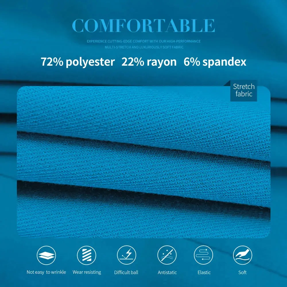 Fortschrittliche multisensorische Technologie: Mischung aus Polyester, Rayon und Spandex, die Atmungsaktivität, Weichheit, Feuchtigkeitstransport und leichte Waschbarkeit garantiert, perfekt für lange Tage.